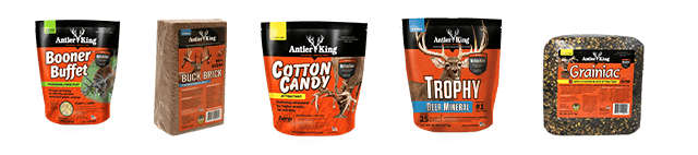 Establish mineral sites with Antler King Trophy Deer Mineral, Power Rack Mineral, Bone Up Mineral, Apple Burst Mineral, and Apple Burst Deer Block. While you will find that the greatest consumption of these four products will be from February to September, it is important to keep these sites full of mineral all year around. Continue your winter feeding program with the Antler King Hi Protein Big Buck Block, Energy Plus Wildlife Block, Sweet Apple Intensity and Attract-N-Fuel.